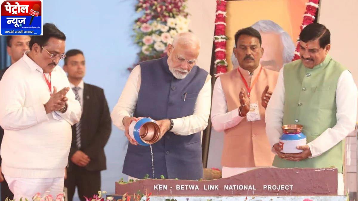 खजुराहो/छतरपुर। प्रधानमंत्री(PM) नरेंद्र मोदी ने शनिवार को मध्य प्रदेश के छतरपुर जिले के खजुराहो में केन और बेतवा नदियों के जल का संगम कराया और दोनों नदियों को जोड़ने वाली महत्वाकांक्षी परियोजना के शिलान्यास के साथ साथ ओंकारेश्वर में फ्लोटिंग सोलर पावर प्लांट का लोकार्पण भी किया। इसके अतिरिक्त, उन्होंने 1153 अटल ग्राम सुशासन भवनों