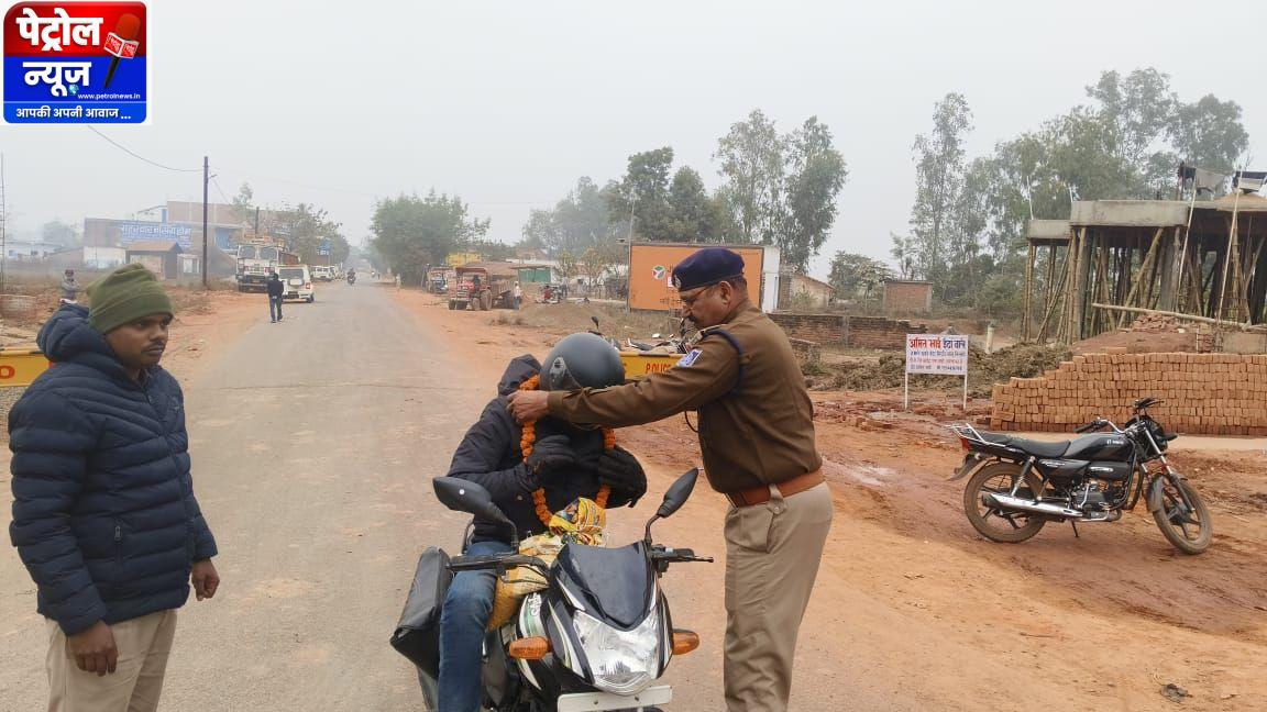 MP-यातायात पुलिस की अनोखी पहल: हेलमेट पहनने वालों का फूल-मालाओं से किया स्वागत
