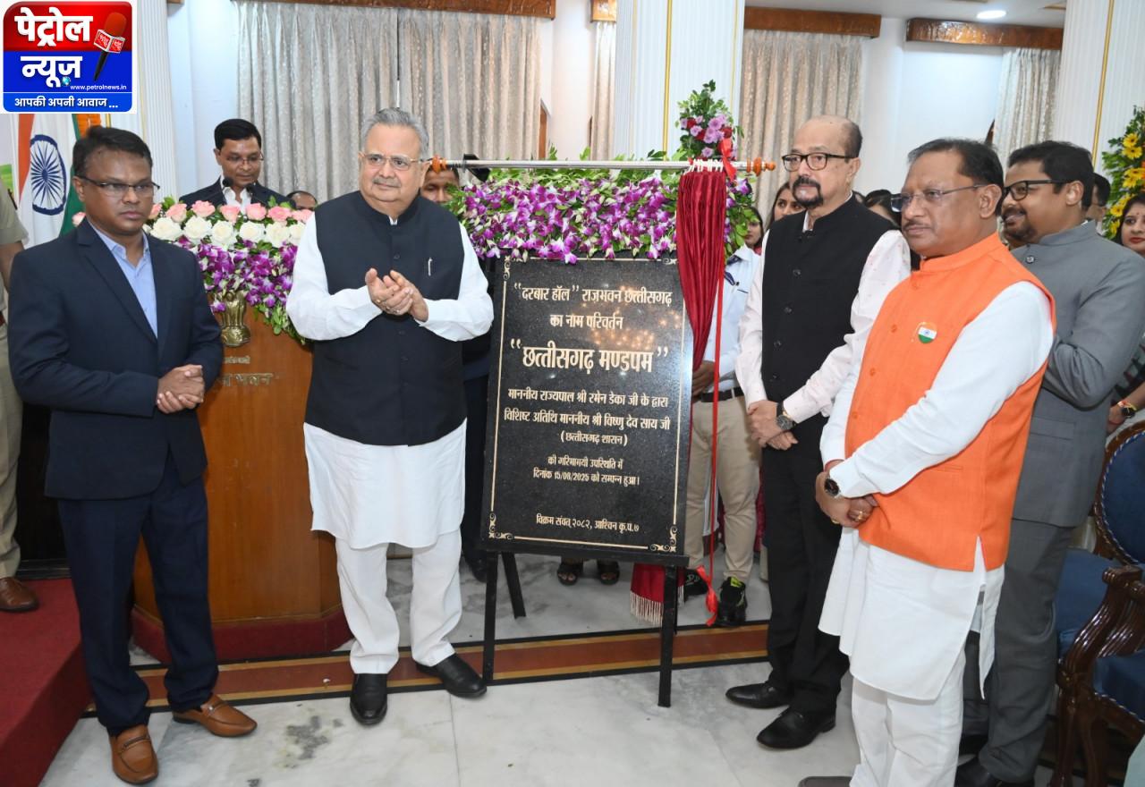 राज्यपाल श्री रमेन डेका ने आज स्वतंत्रता दिवस के अवसर पर दरबार हॉल का नाम परिवर्तन कर छत्तीसगढ़ मण्डपम करने की घोषणा की एवं इसका विधिवत अनावरण किया।